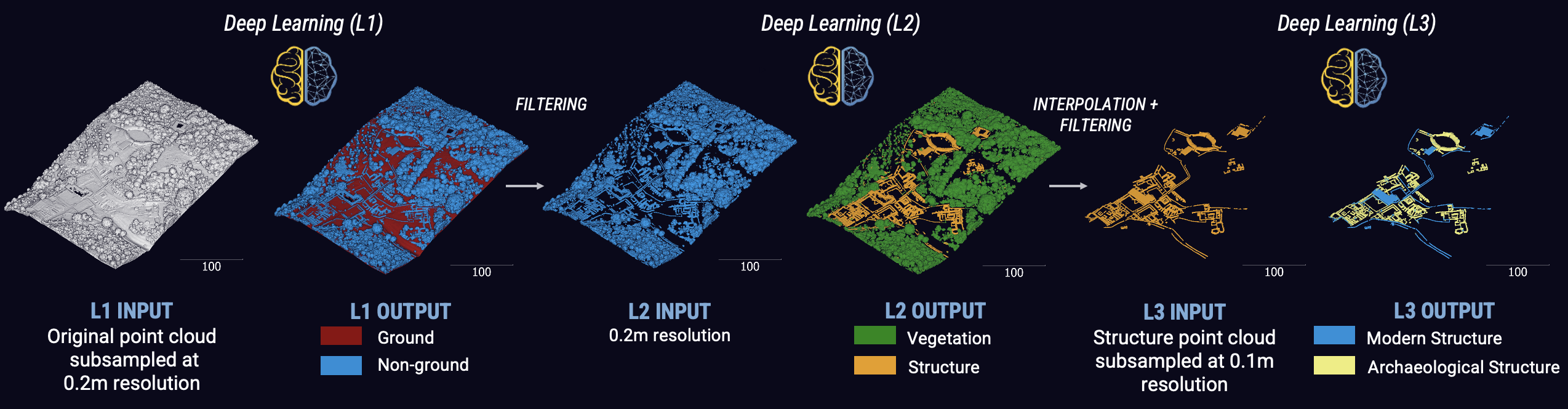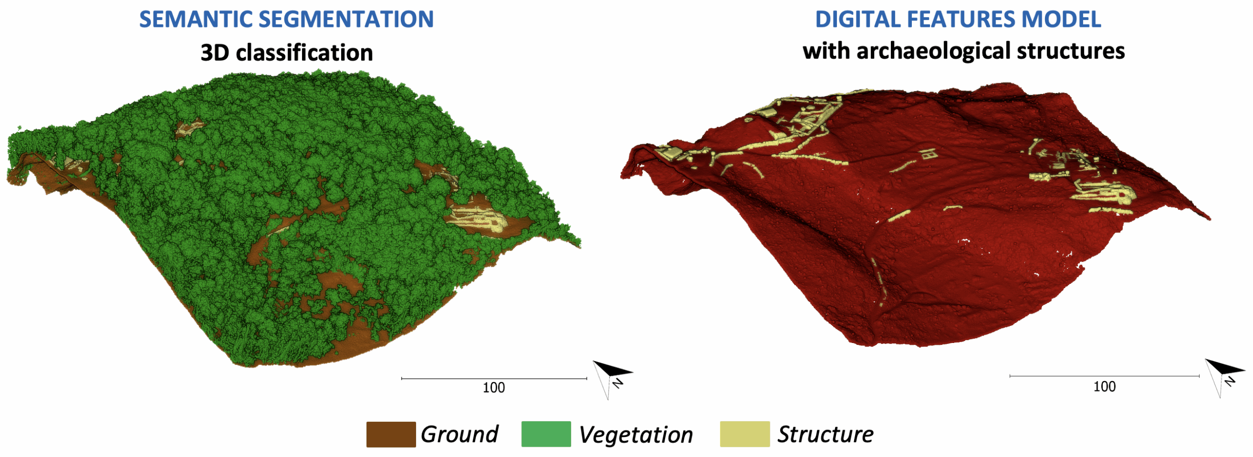 FBK-3DOM is involved in the LiDAR data processing, including strip adjustment, accurate geo-referencing and semantic segmentation for the identification of archaeological features. Exploiting and advancing its past achievements in 3D classification of point clouds, FBK-3DOM wants to tackle scalability, generalisation and explainability. “Data will come from various LiDAR sensors and countries around the world – explains Gabriele Mazzacca, FBK young researcher – and collaborations with archaeologists will boost the developments towards reliable and efficient AI-based processing methods”.