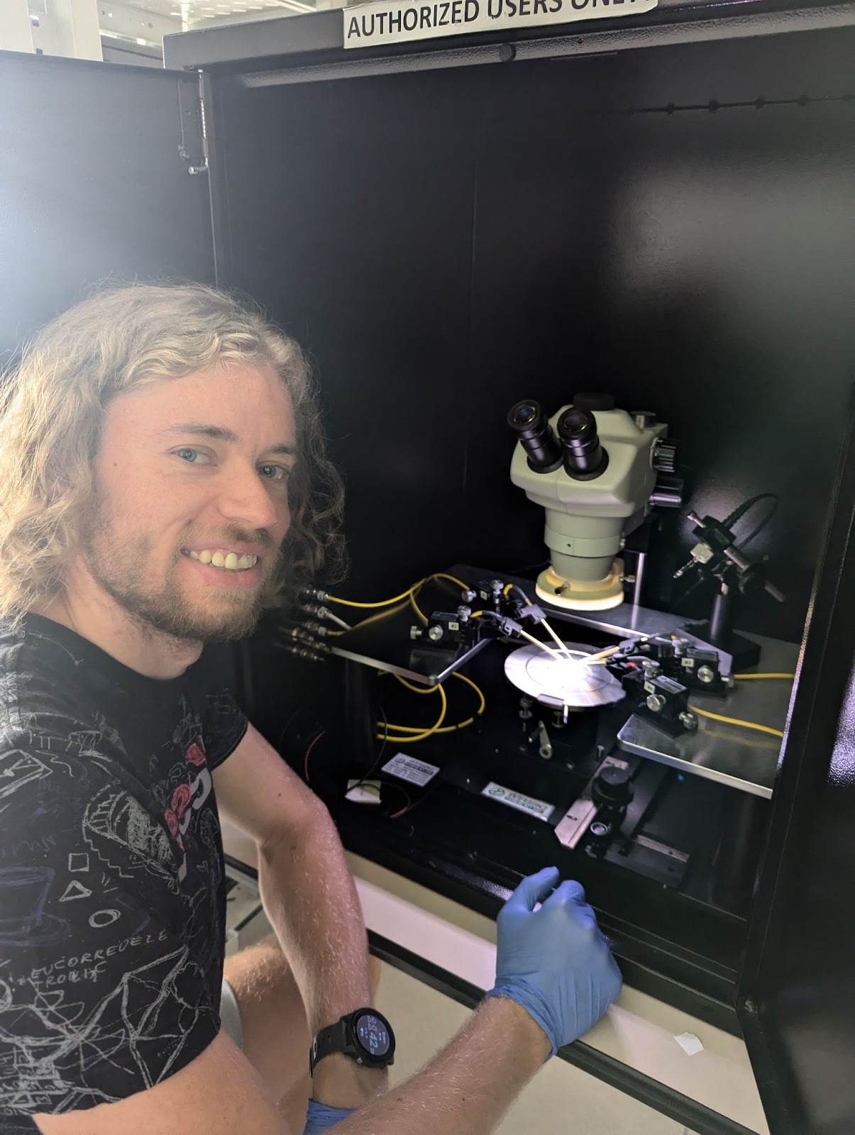 David in the Bruno Kessler Foundation laboratory during the characterisation of sensors used as “space eyes”