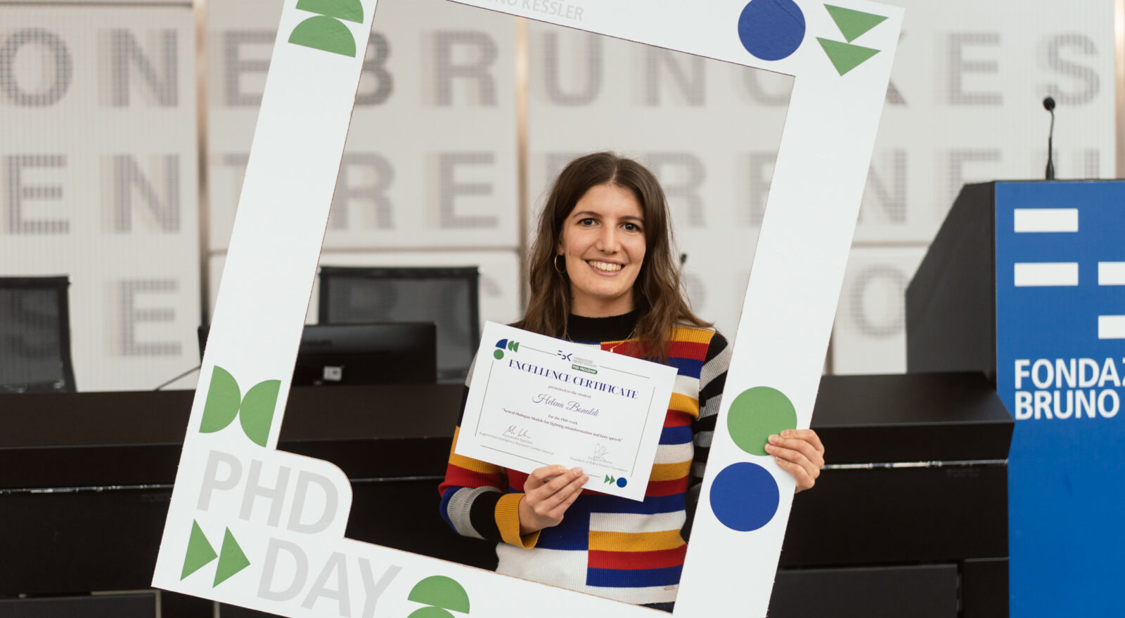 Helena Bonaldi: Dopo la Laurea triennale in Studi internazionali e la Magistrale in Data Science, ho avuto modo di svolgere in FBK un Tirocinio magistrale per definire la tesi sotto la supervisione di Marco Guerini, a capo dell’unità LAND del Centro FBK Augmented Intelligence. Si è trattato di una specie di pre-dottorato. È durante la magistrale che ho iniziato a interessarmi a questo ambito, grazie a un corso di Computational Linguistics che mi ha appassionato.